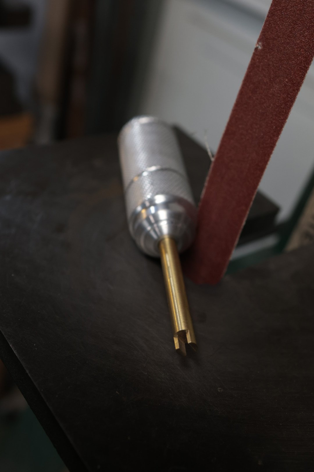 Turned brass shank adds weight and durability, with the A-bar alignment tool integrated into the back.