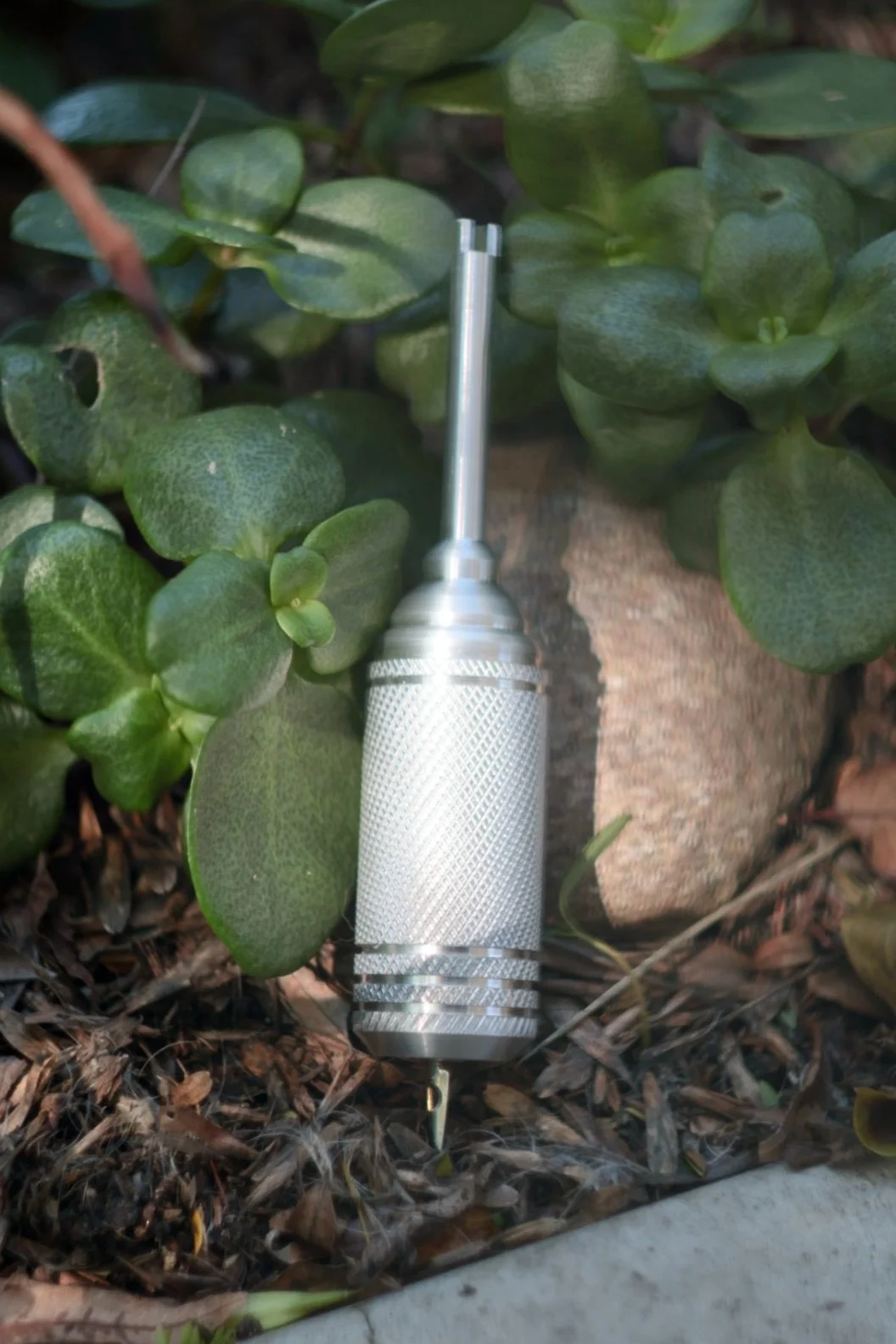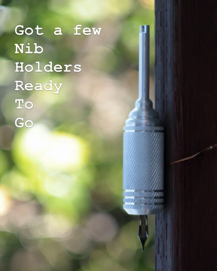 Machined from a solid block of aluminum and hand-turned in the shop, this nib holder is built with weight, balance, and durability in mind.